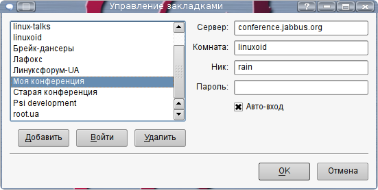 Еще одна возможность программы — создание интернет-конференций. Jabber позиционирует себя как программное обеспечение, с помощью которого могут общаться, как обычные люди, так и корпоративные пользователи. Это находит свое воплощение в создании конференций. Если ранее для возможности общения сразу с несколькими лицами требовалось наличие у каждого из них IRC-клиента, который необходимо было правильно настроить, то теперь достаточно создать чат-комнату. Новый человек, посетивший чат-комнату, сможет увидеть последние реплики участников группы. Это новшество, которого не было IRC-адаптерах.